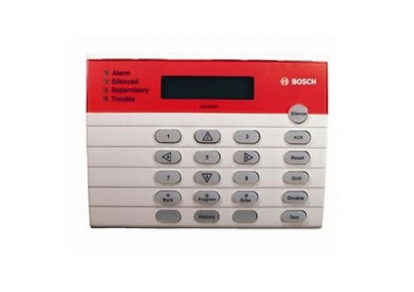 Proteje con código de acceso las funciones del sistema. Las dos líneas, 32 caracteres LCD (pantalla de cristal líquido) anuncia el estatus y eventos del sistema.
